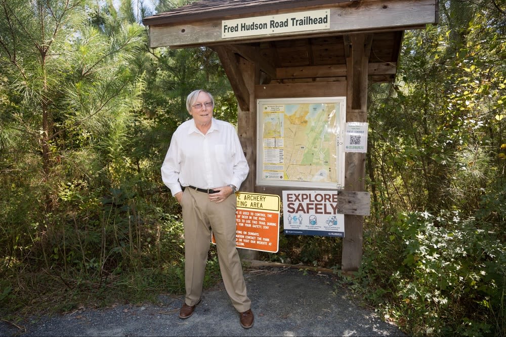 Joe enjoying a visit to the Fred Hudson Road trailhead of the Fresh Pond State Park
